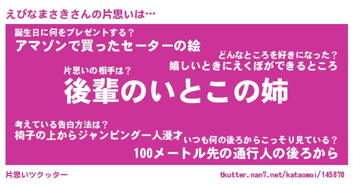 | ツイッター | えびなまさきさんのツイッターID『dendenmushi_kun』 |