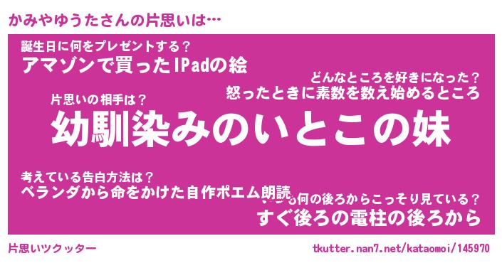 | 恥ずかしいあだ名 | 『プリティーかみやゆうた』『かみっちょ』 |