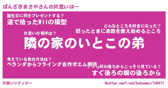 | ヘコむあだ名 | 『ばんにゅー』『牛乳』『ばん太郎』 |