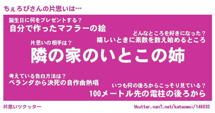 | ヘコむあだ名 | 『ちぇもー』『つくし』『ちぇを』 |