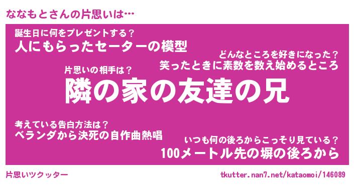 | ヘコむあだ名 | 『ななもー』『酢こんぶ』『ななっぺ』 |