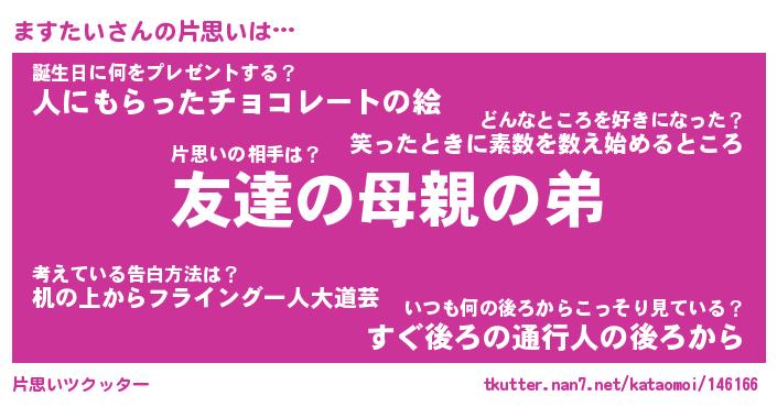 | 胡散臭い通販商品みたいなあだ名 | 『億万長者になれるブレスレット…その名も「ますたい」』 |