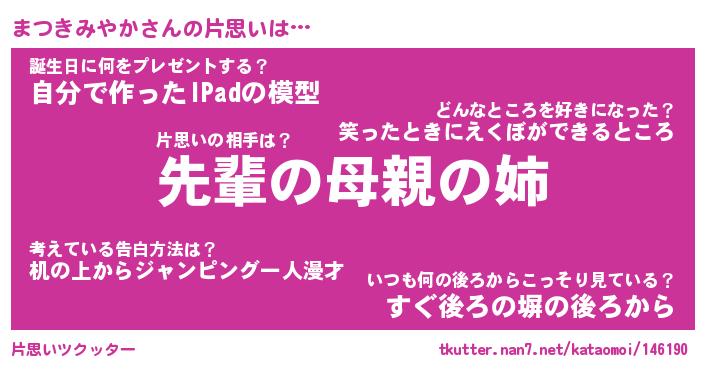 | ヘコむあだ名 | 『まつにー』『つくし』『まつっ子』 |