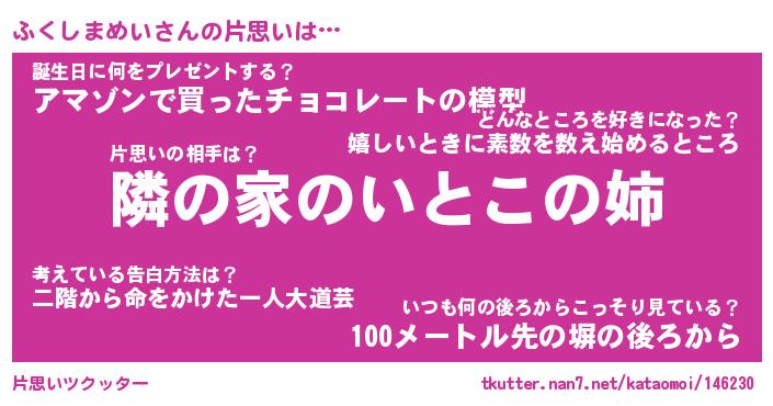 | 男性向けラノベタイトル風あだ名 | 『ふくしまめいの憂鬱』 |