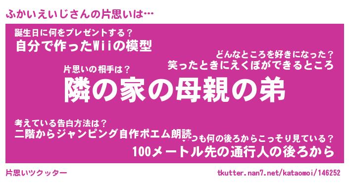 | 胡散臭い通販商品みたいなあだ名 | 『必ず成功するブレスレット…その名も「ふかいえいじ」』 |