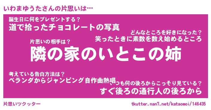 | 胡散臭い通販商品みたいなあだ名 | 『必ず成功する霊験あらたかなお札…その名も「いわまゆうた」』 |