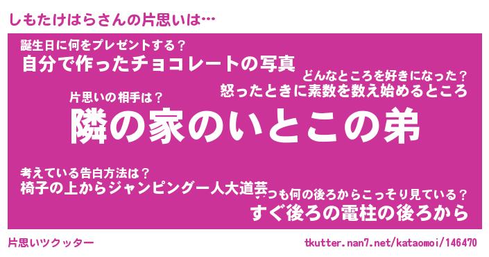 | 胡散臭い通販商品みたいなあだ名 | 『モテモテ間違いなし霊験あらたかなお札…その名も「しもたけはら」』 |
