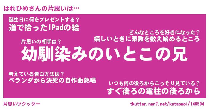 | 男性向けラノベタイトル風あだ名 | 『はれひめの憂鬱』 |