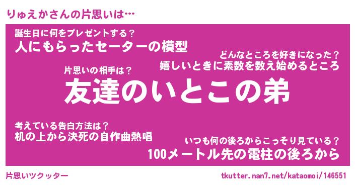 | ヘコむあだ名 | 『りゅもー』『酢こんぶ』『りゅお』 |