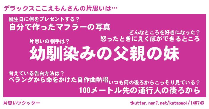 | 男性向けラノベタイトル風あだ名 | 『デラックスここえもんの憂鬱』 |