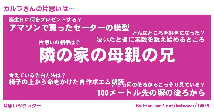 | ヘコむあだ名 | 『カルにー』『なまこ酢』『カルを』 |