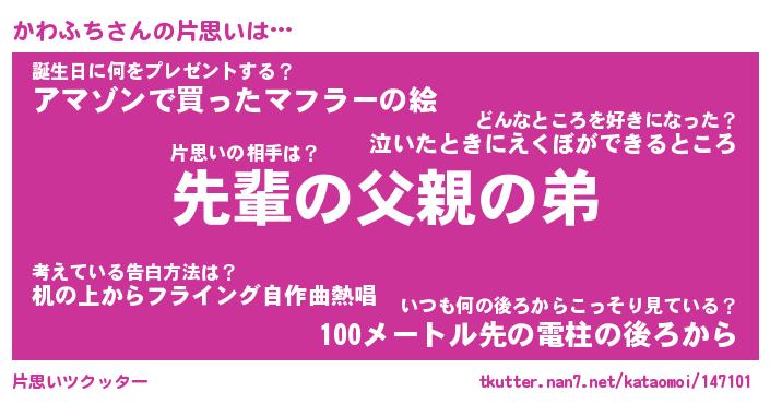 | 男性向けラノベタイトル風あだ名 | 『かわふちの憂鬱』 |