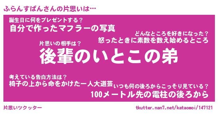 | 胡散臭い通販商品みたいなあだ名 | 『モテモテ間違いなし水晶球…その名も「ふらんすぱん」』 |