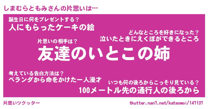 | 伝説のあだ名 | 『封印されしスナイパーしまむらともみ』 |