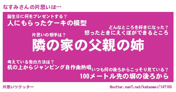 | 2回繰り返すあだ名 | 『なすなす』『ななすす』『なあなあ』 |