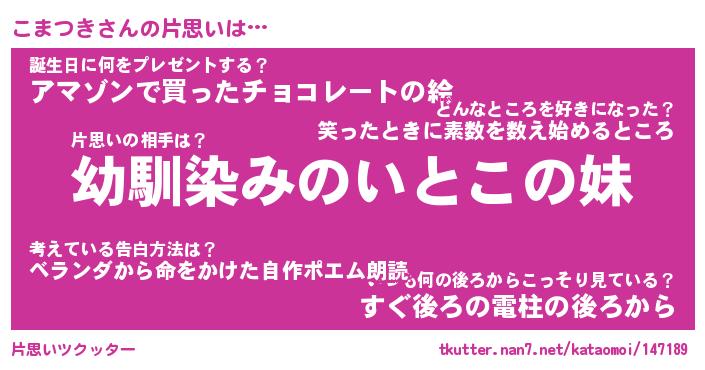 | 意味不明あだ名 | 『ペロリンこまつき』『永久保存こまつき』 |