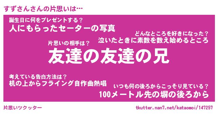 | ヘコむあだ名 | 『すずもー』『なまこ酢』『すずっぺ』 |
