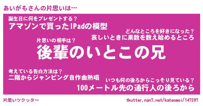 | ヘコむあだ名 | 『あいもー』『牛乳』『あいっちょ』 |