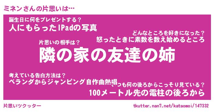 | ファンタジー風あだ名 | 『ミネフェル』『エターナルミネンー』 |