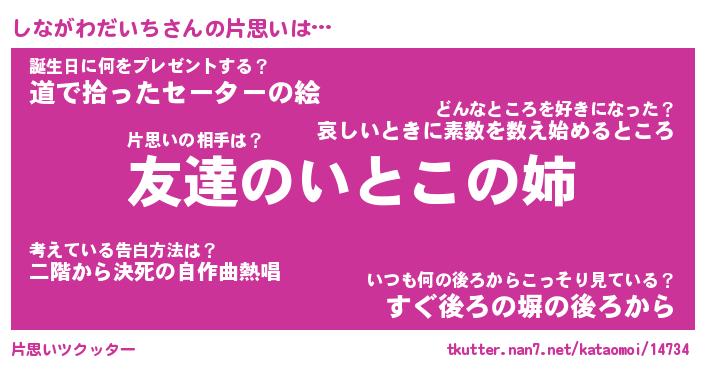 | 伝説のあだ名 | 『封印されしスナイパーしながわだいち』 |