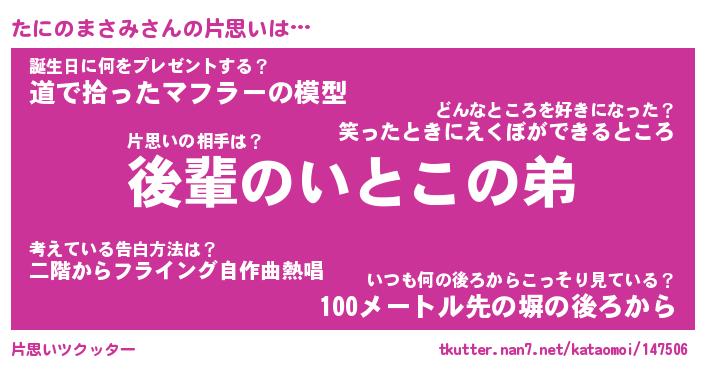 | ヘコむあだ名 | 『たにもー』『豆乳』『たに太郎』 |