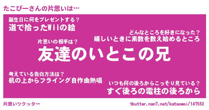| 意味不明あだ名 | 『ペロリンたこぴー』『永久保存たこぴー』 |