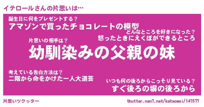 | 男性向けラノベタイトル風あだ名 | 『イテロールの憂鬱』 |