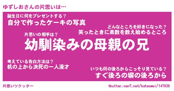 | ファンタジー風あだ名 | 『ユズフェル』『エターナルユズシオー』 |