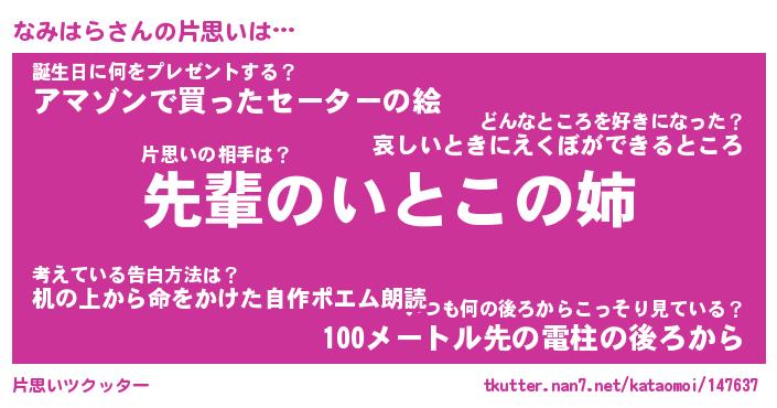 | ファンタジー風あだ名 | 『ナミフェル』『エターナルナミハラー』 |