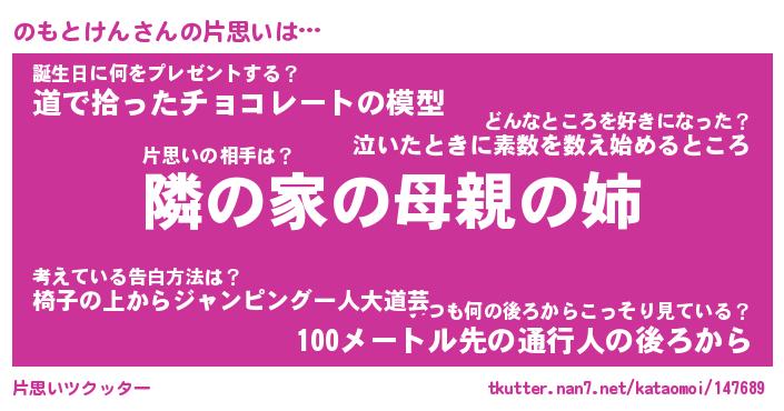 | 胡散臭い通販商品みたいなあだ名 | 『必ず成功するブレスレット…その名も「のもとけん」』 |