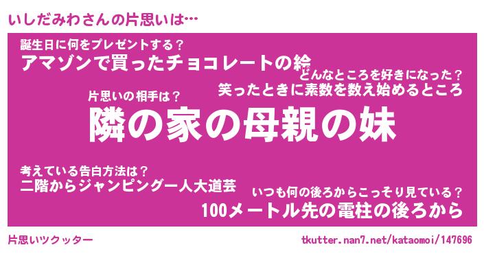 | 肩書あだ名 | 『いしだみわ社長』『いしだみわ総理大臣』 |