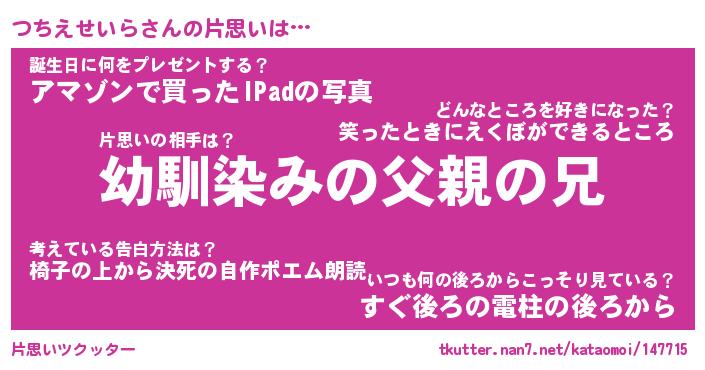 | 胡散臭い通販商品みたいなあだ名 | 『必ず成功する水晶球…その名も「つちえせいら」』 |
