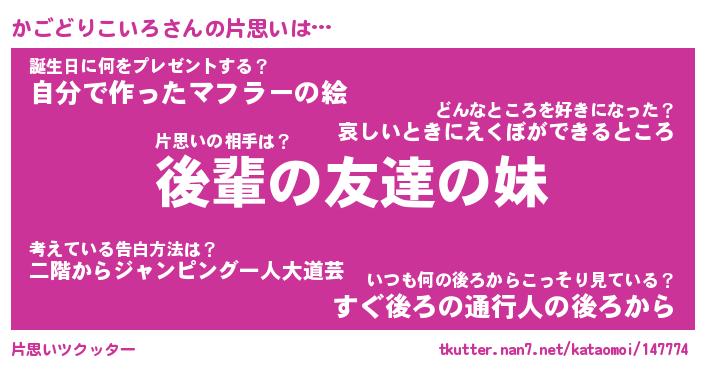 | ヘコむあだ名 | 『かごっふぃ~』『つくし』 |