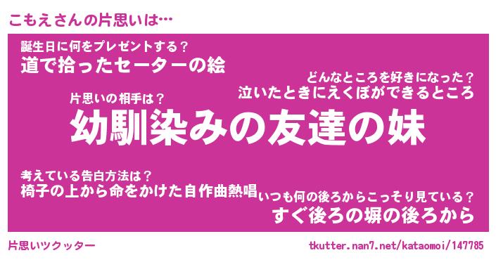 | ファンタジー風あだ名 | 『コモフェル』『エターナルコモエー』 |