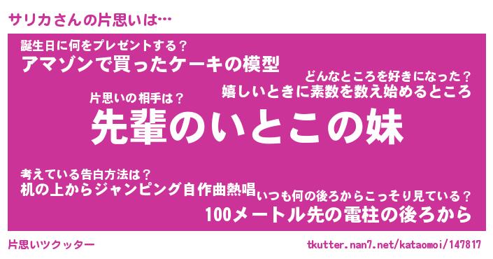 | 意味不明あだ名 | 『ペロリンサリカ』『サリカフォーエバー』 |
