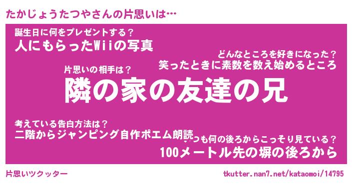 | 男性向けラノベタイトル風あだ名 | 『たかじょうたつやの憂鬱』 |