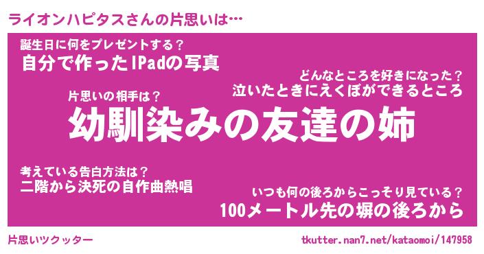 | ヘコむあだ名 | 『ライっふぃ~』『つくし』『ライお』 |