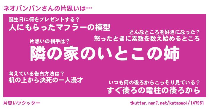 | ヘコむあだ名 | 『ネオにゅー』『酢こんぶ』『ネオを』 |