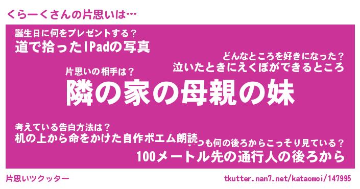 | ヘコむあだ名 | 『くらにー』『豆乳』『くらっちょ』 |