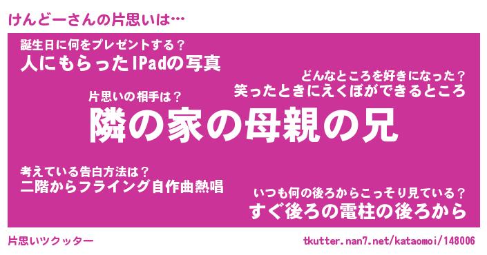 | 意味不明あだ名 | 『ペロリンけんどー』『永久保存けんどー』 |