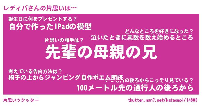 | 意味不明あだ名 | 『ペロリンレディバ』『永久保存レディバ』 |