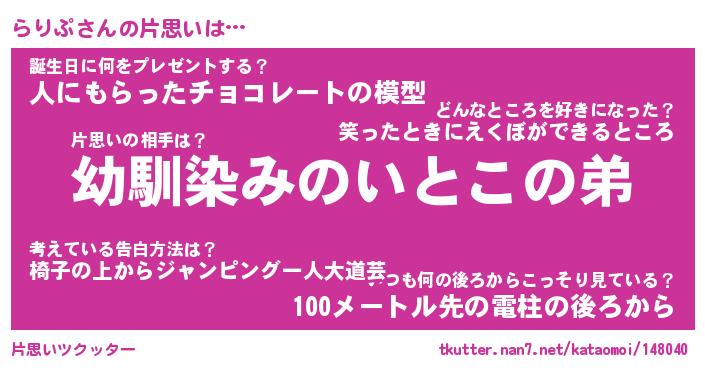 | 意味不明あだ名 | 『ペロリンらりぷ』『らりぷフォーエバー』 |
