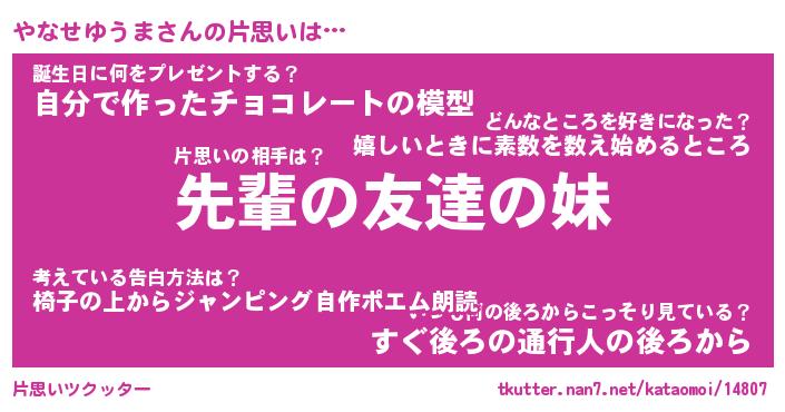 | 胡散臭い通販商品みたいなあだ名 | 『モテモテ間違いなし霊験あらたかなお札…その名も「やなせゆうま」』 |