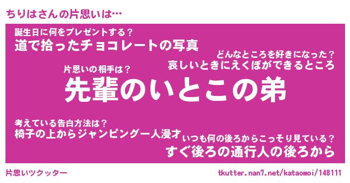 | ヘコむあだ名 | 『ちりにゅー』『豆乳』『ちりっちょ』 |