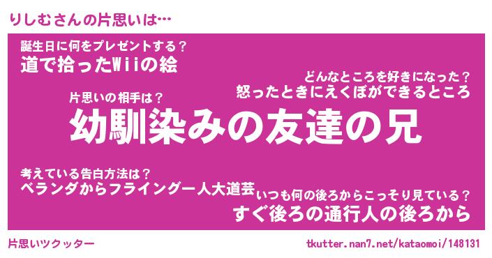 | ヘコむあだ名 | 『りしもー』『豆乳』『りしぷりん』 |