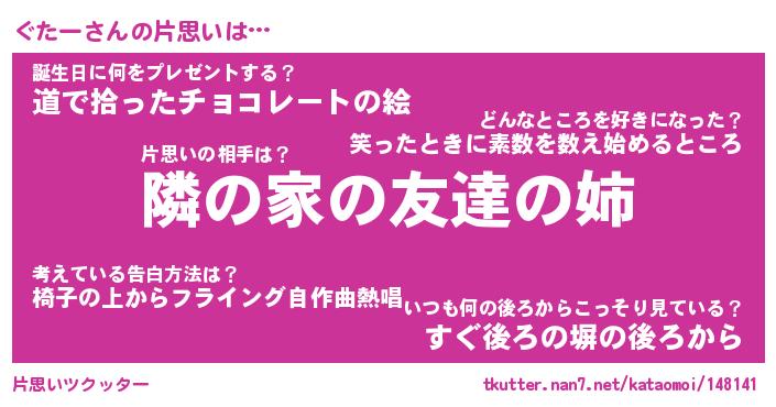 | 胡散臭い通販商品みたいなあだ名 | 『必ず成功する霊験あらたかなお札…その名も「ぐたー」』 |