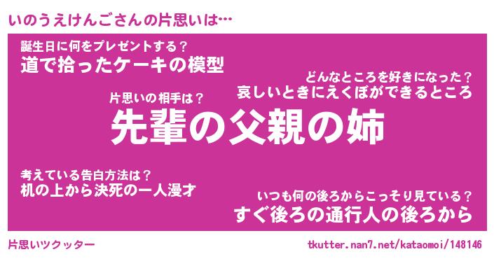 | 胡散臭い通販商品みたいなあだ名 | 『モテモテ間違いなし水晶球…その名も「いのうえけんご」』 |