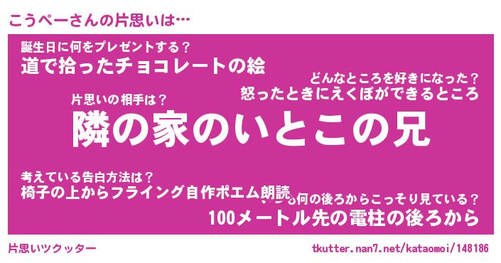 | 意味不明あだ名 | 『ペロリンこうぺー』『永久保存こうぺー』 |