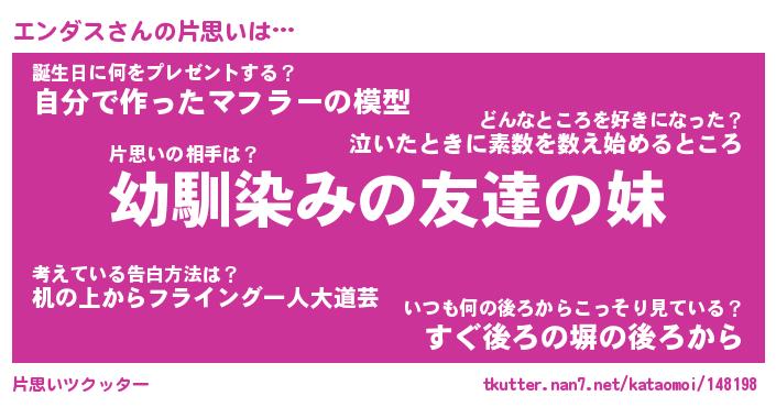 | 意味不明あだ名 | 『ペロリンエンダス』『永久保存エンダス』 |