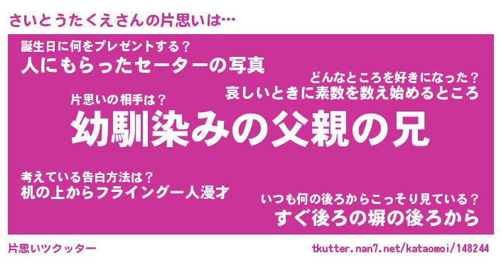 | 男性向けラノベタイトル風あだ名 | 『さいとうたくえの憂鬱』 |